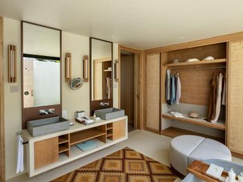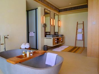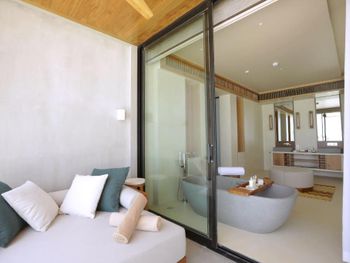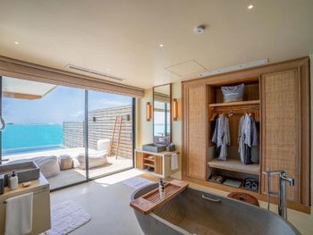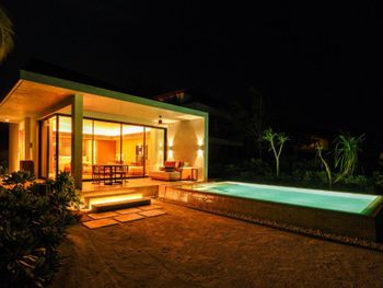 Новые современные номера, с умным домом, очень красивыми панорамными окнами в пол с видом на океан. Каждая вилла разделена густым забором, очень уединенно. Отличные, продуманные бассейны (нескользкий пол, грубина 0.9м) при вилле.