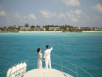 Очаровательная девушка, прямиком из зоны прилета, сопровождает вас к скоростному комфортабельному (кондиционер, мягкие диваны, чай/кофе) катеру. 20 минут созерцания океанических прелестей и вы в раю. Дорога обратно по той же схеме, 20 минут на катере далее сотрудник отеля сопровождает вас вплоть до зоны паспортного контроля (регистрация/оформление багажа все в его руках).