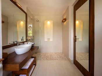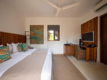 отличный уединенный отель со своей территорией, охраной, рестораном. кухня выше всяких похвал, шеф может приготовить любое блюдо и делает это с душой на твердую пятерку. панорамный бассейн достаточной глубины, чистый, если заходишь в него, персонал включает джакузи. выход к пляжу через закрывающуюся дверь. на территории птицы, бурундуки, вараны. отличный отель, рекомендую!