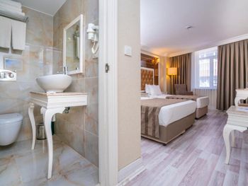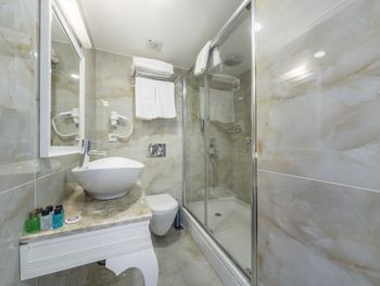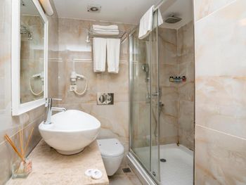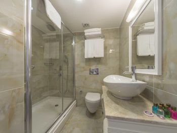 В номерах в Topkapi Old City Kensington Hotel ISTANBUL установлен кондиционер, телевизор с плоским экраном и сейф. Среди прочих удобств — письменный стол, чайник и мини-бар, а также собственная ванная комната с душем. В собственной ванной комнате есть бесплатные туалетно-косметические принадлежности. Во всех номерах есть платяной шкаф.