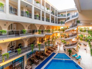 Звукоизоляция номеров абсолютная катастрофа, нам достался номер на 4 этаже, второй номер от лифта. Мы слышали абсолютно все, каждый спуск и подъем лифта, каждый чемодан на колесиках, каждого не спящего ночью жильца(это учитывая, что у меня крепчайший сон и после ночных клубов я сплю как "убитый") Теперь о менталитете жильцов, 99% это русскоговорящие люди(выходцы СССР), как следствие... 1. Весь день на пляж попасть невозможно, все лежаки уложены полотенцами прижаты камушками и так каждый день, мы только видели, как вечером владельцы этих полотенец собирают их. Огромная рекомендация к владельцам отеля, ввести правило, "Оставленное таким образом полотенце считается утерянным". 2. Обеденная зона, снова про менталитет. Жильцы сами создавали ажиотаж, там где его вовсе нет, еды всегда было в достатке, за что огромное спасибо и персоналу и управляющим отеля, но люди умудрялись, раньше назначенного времени создавать очереди на зоне гриля или на зоне шведского стола. Видя сколько еды люди набирают, у нас каждый день был шок, более того они всё это не съедали... Эти 2 пункта вовсе не в упрёк к персоналу или владельцам, это больше посыл к жильцам, будущим или тем кто там был. Таким образом вы только повышаете стоимость жилья. Отелю же желаю процветания и терпения.