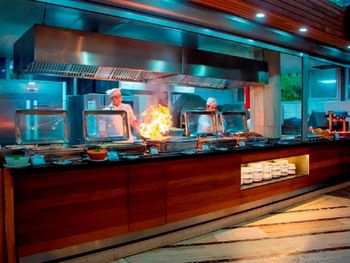 Отсутствие анимации, еда была очень острая , мясо на гриле было сгоревшее . В целом еды было много, но в большинстве случаев она была невкусная.