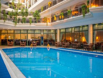 Замечательный персонал! Прекрасная еда! Великолепный пляж! Прекрасная вечерняя анимация. Садовник ежедневно ухаживает за растениями. Номера чистые, постель и полотенца меняли постоянно. А какой красивый рассвет на море! Вода в море, как парное молоко, особенно по утрам в 7 часов. Великоленый массаж! Спасибо массажисту Ymer . Вообще, всему персоналу отеля огромное спасибо. Отдыхали во второй половине сентября. Погода великолепная, каждый день солнце и плюс 29-30 градусов. Центр города совершенно рядом. Каждый вечер променад по морю и по городу. Рекомендуем обязательно посетить этот отель.