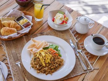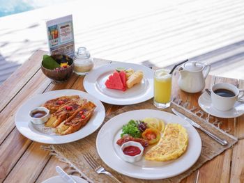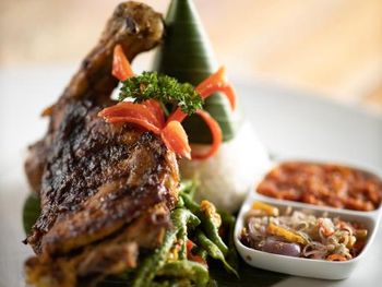 Каждое утро гостям подают американский, континентальный или азиатский завтрак. На обед и ужин в ресторане Sawangan Resto, работающем на территории курортного отеля, готовят блюда местной и интернациональной кухонь.