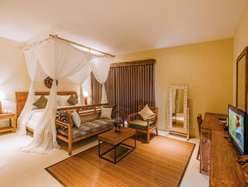Жили на вилле, вилла двухэтажная, вход на второй этаж по отдельной лестнице с улице. Об этом нигде не сказано и для нас это было первой неприятной неожиданностью, так как отдыхали с маленькими детьми и рассчитывали на то что лестница будет внутри дома. В результате плохой водосточной системы, а вернее её полного отсутвия, стены дома намокают, и как результат - сырость, отслоение краски и плесень. После заселения вообще хотели уехать, но менеджер уговорил остаться, типо они все исправят. В итоге на следующий день на вилле перекрасили стены, заменили шторы и тюль и полотенца. Стало более менее приятнее, но к нашему отъезду сырость полезла опять. Доски на террасе давно пора менять, они уже гниют и смотрятся и пахнут гнилью, это некуда не годится. Хотя на некоторых виллах делают ремонты, возможно их и заменят. Завтраки по меню, разобразия завтраков хватит на неделю максимум, дальше невозможно их есть, одно и то же.