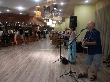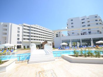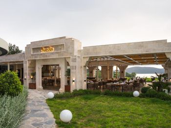 20 минут от аэропорта, длинная береговая линия- есть где погулять, большая терраса с очень красивым видом на море, бар с закусками и мороженым 24 часа.