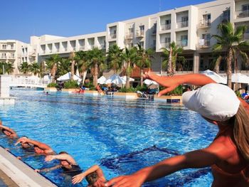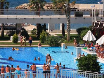Неподогреваемый детский бассейн, было бы удобно даже в жару, так как детская зона всегда в тени.