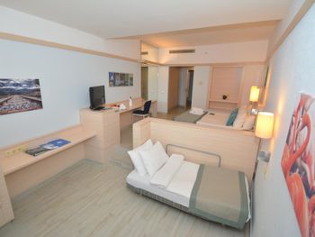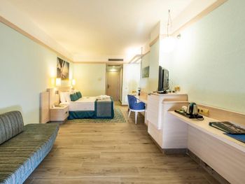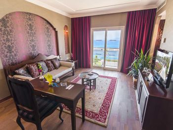 В номерах по включении кондиционера запах канализации и плесени. Хотя номера чистые. Ремонт приемлемый. В основном ресторане грязновато. Думаю, основная причина не отель, персонал старается, а отдыхающий контингент. Народу много; привозят разные тур группы, ресепшен не справляется, публика из очень разных стран. В барах у бассейна официант не справляются с подготовкой напитков, и в целом грязно, сесть сложно. Нужно просить, чтобы убрали.