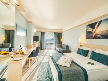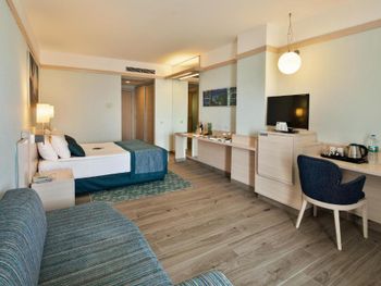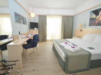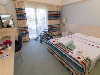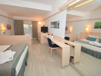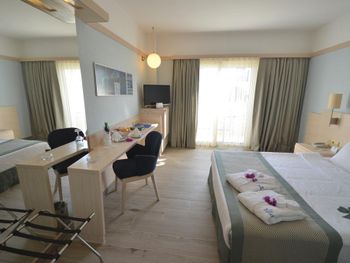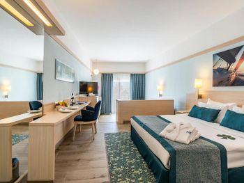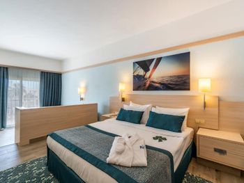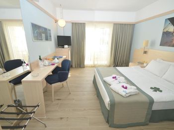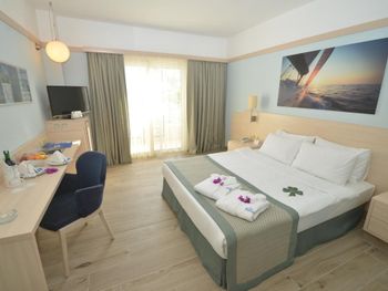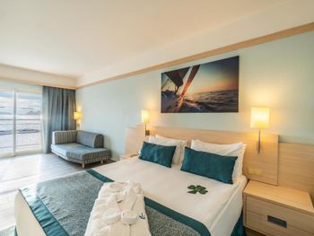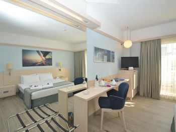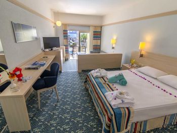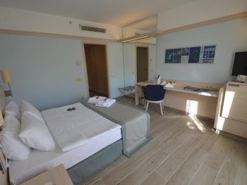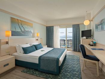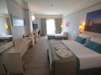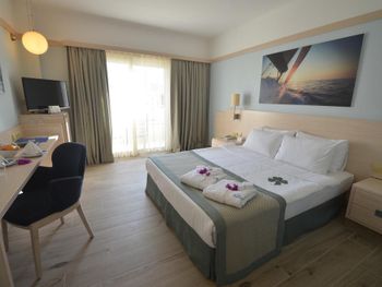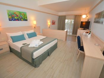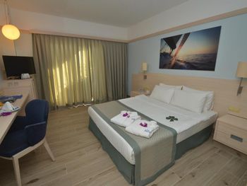 Останавливаемся в этом отеле пятый раз. Удобное расположение, рядом городок Тургутрейс. Пляж отеля чистый, со светлым, почти белым песком, удобная бухта для плавания. Отличная команда детской анимации. Питание без изысков, но вполне разнообразное. Фрукты по сезону, выпечка, соки только из автомата, вкусный айран, мороженое и тп. Номера удобные, светлые, сантехника приличная. При заезде проапгрейдили наш улучшенный стандартный номер до семейного бесплатно. Остальное все стандартно - лежаки, полотенца. Есть хамам, паровая баня, для все включено - бесплатно. Платные услуги - массаж, пилинг. Также есть подогреваемый крытый бассейн, в этот раз оказалось актуально, так как приехали в похолодание. Детский неподогреваемый бассейн с тремя горками, работают по расписанию, рядом детский клуб с игрушками и аниматорами, но он в помещении в тени, поэтому там не были, в жару удобно. Персонал очень дружелюбный, готовы помочь всегда, но без навязывания. Приедем еще раз!