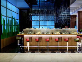 At Le Central Restaurant, guests can enjoy light Mediterranean cuisines from its à la carte menu. Sky View bar, which is located on the 11th floor, features specialty wines and panoramic city views.
