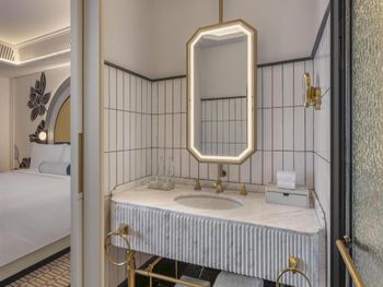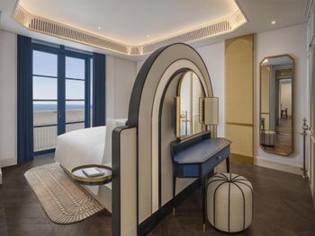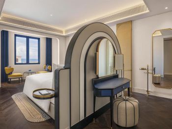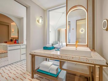 Довольно странный дизайн номера. Большой 32 метровый номер разбит какими то коридорчиками и в результате спальня размером в 16 м. Неинтересно. Маленькие окна в номере. Поэтому sea view, который был обещан, был виден только, когда ты подходил к окну. Да и то, это вид не на море а на мост поцелуев, где проходит вечернее шоу. В отеле совершенно нет атмосферы, того что делает реальный пятизвездный отель таким привлекательным,