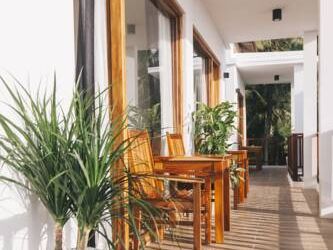 Очень понравилось расположение - в пешей доступности несколько хороших заведений. Так же понравились небольшие террассы у каждого номера, бассейн и зеленая зона вокруг него - очень атмосферно и успокаивающе. Мягкая удобная кровать в номере, удобный стол и стулья - за ними действительно можно работать в комфорте. Администратор был заботлив и внимателен, всегда старался помочь и решить проблему, это очень ценно.