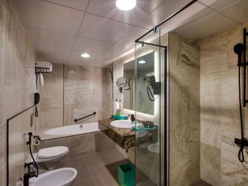 Неплохой завтрак, особенно порадовал выбор различных типов приготовленных яиц (в т.ч. пашот), вкусный десерт из манной крупы, жарят оладушки на заказ, заботливый персонал все приносит прямо за стол. При заселении попросили две раздельные кровати, т.к. были семьей с 2-мя детьми, нам бесплатно повысили категорию номера и заселили в большой номер с 2-мя кроватями king-size.