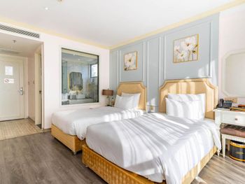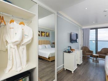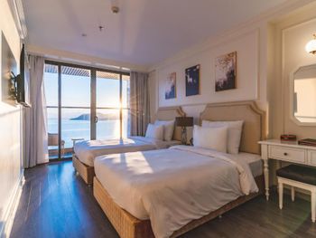 Понравился в первую очередь вид из окна он убирает все недо́статки которые были.Персонал прям очень хороший вежливый помогают при любой ситуации.море прям на против очень удобно и быстро ,каждый день купаемся и видишь свой номер из моря.у нас был Делюкс гранд на 19 этаже,вид на море и Vinperl.