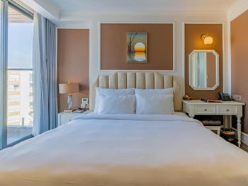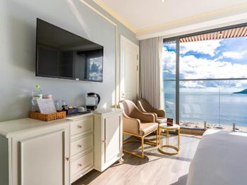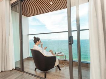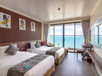 Пишу специально на русском для соотечественников. Отель и правда отличный. Мы бронировали номер повышенного комфорта с балконом на море. Идеальный, просто идеальный вид, даже когда на пляже поют всю ночь местные любители караоке. Встречать рассвет на балконе - сказка. Но! Ложка дегтя ждала нас в последний день. Когда оставалось 2 часа до самолета, оказалось наша карта Mastercard (турецкого банка) не срабатывает. Были проблемы с терминалом оплаты, по всей видимости. А нужно было 11 миллионов донгов. С учетом, что у нас не было такой суммы наличными даже в долларах и евро, мы тщетно пол часа пытались в 6 утра найти кого-то, кто может нам обналичить эту сумму поменяв рубли на донги. Сообразили сами, что можно поехать к банкомату. И с огромной комиссией в 4 транзакции мы сняли с карты 11 миллионов. Комиссия суммарно за снятие этой суммы была больше 800 тысяч донгов. На самолет мы успели, но таксист взял с нас сумму по счетчику - это еще 600 тысяч донгов, хотя можно было договориться на 250; но мы неслись как угорелые и последние зарегистрировались на рейс! Мой вам совет - возите наличные или расплачивайтесь заранее за номер накануне выезда, а в день выезда просто доплатите копейки за мини-бар. Мы постоянно потрошили мини-бар и доплатили 100 тысяч.