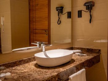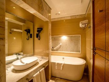 Выбирали отель для одной ночёвки у аэропорта. Добраться можно своим ходом на метро, дорога занимает около 20 минут, сам отель рядом с метро. Отель с виду обычный, но внутри намного богаче, чем кажется. Нас встретил прохладных номер, с заранее включенным кондиционером. Но был январь, в городе стояла комфортная температура, мы выключили кондиционер и не пользовались им вообще. Номер просторный, в нём было всё необходимое: вода, чай, кофе. Удобная ванная комната с хорошей сантехникой. В отеле есть бассейн, но до него не добрались, к сожалению. Хоть находится отель рядом с аэропортом, но особых звуков, которые могли мешать, мы не заметили.