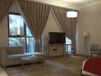 Шум. Очень громкий шум с улицы, шум от кондиционера. Спать невозможно. Окна практически не поглощают звук. Самолёты из DXB будут с вами.