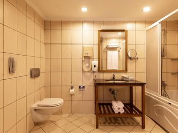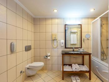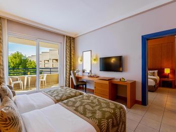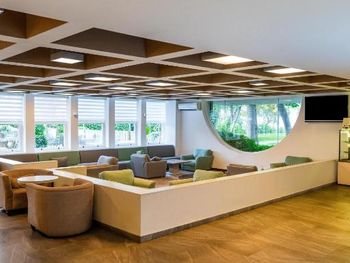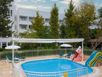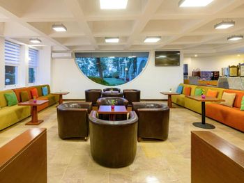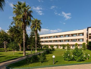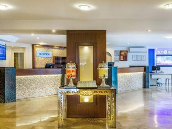 Этот отель больше напоминает советский санаторий. Очень очень уставший интерьер везде. Фотографии отеля очень удачные и совсем не соответствуют действительности. Маленькие бассейны, крытый бассейн вообще крошечный. Открытый бассейн очень маленький для такого номерного фонда. В столовой (именно столовой, а не в рестопане) часто нет свободных столов, при том, что плотность посадки зашкаливает.