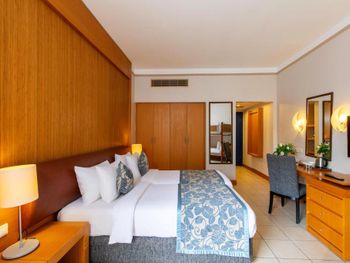 Отель не соответствует 5 звездам. Все старое, требуется ремонт. Фен, в душе 90ых годов. Это всего лишь,3 звезды. Еды много, но она не вкусная. Персонал не профессиональный. В море не зайти, очень плохое дно - в камнях.