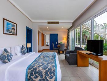 Большая территория отеля, много деревьев, выход на пляж. Питание, в целом - ок, однообразный завтрак.