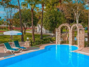 Все было супер. Безумно красивая территория , все зеленое. Много котов и бегают ручные кролики, но везде все чисто. Всегда было место на лежаках, их достаточно много. Не маленькая территория , но отель расположен вдоль моря и все в шаговой доступности.