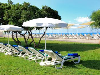 Большая береговая линия, много шезлонгов на траве, неплохой алкоголь (хоть и нет разнообразия). Хороший персонал в СПА комплексе