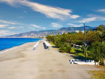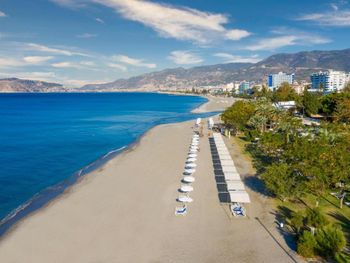 Рядом в отелем автобусная остановка, можно не дорого доехать в цент Алании, базар и т.д.
