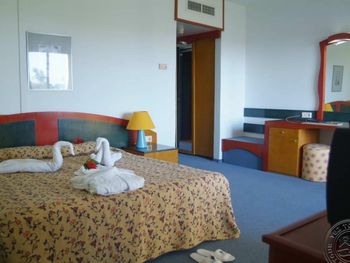 Приезжая в данный отель сразу будьте готовы, что ваше заселение может растянуть на целый час, будут долго разбираться с вашим бронированием, дадут анкету на несколько листов и заставят заполнять самостоятельно, хотя обычно это делает сам персонал, в период всего проживания на ресепшине находятся не более двух работников, при том что в один момент зачастую заезжает по 3-4 семьи и один человек постоянно уходит, чтоб вас проводить до номера. Номера старые, поэтому от данного отеля ничего сверхъестественного нежитей, в номере нет ни тапочек, ни халатов, только стоит дешевый шампунь. Пляж находиться в 10 минутах ходьбы от отеля, полотенцем придётся позаботится в отеле, на пляже вам его никто не предоставит.