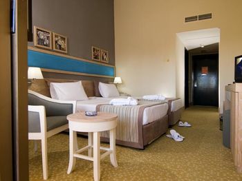 Хороший номер, просторный и смотрел на тихую зону, не было шумно. Завтрак и Ужин хороший классический, всего достаточно. Бассейн на территории большой и анимация была очень хорошей. Даже октоберфест отмечали )). Персонал доброжелательный и готов помочь. Пляж чистый, лежаки чистые, хорошее укрытие зонтичное. И на пляже хорошо организован обед. Парковка для а/м также укрыта от солнца.