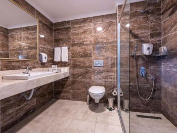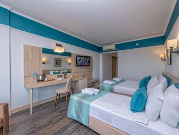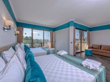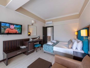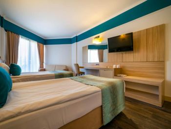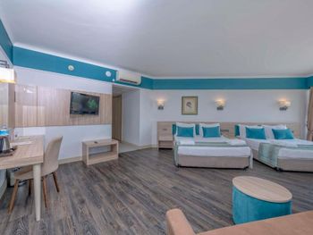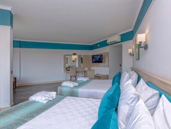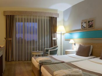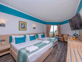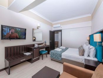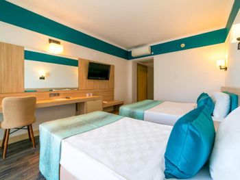 Состояние номера не очень, дверь в ванную чаще всего не закрывалась. Слишком мало крючков и мест, куда можно повесить полотенца. Номер декларирован как трехместный (номер 101), но по факту это двухместный, с дополнительной кроватью для сына 16 лет. Трубка от душа порвалась, вызвали мастера - починили. По поводу смены "сабуна" в картриджах - пришлось обращать внимание горничных на это. Персонал по-русски знает только отдельные слова. Не все знают английский. Приходилось использовать мобильный переводчик, английский и отдельные турецкие слова, жесты. Как писали выше, карту МИР не принимают к оплате, но лично меня уведомили об этом, когда я задал им вопрос по почте букинга ещё до заезда. Если жара, то идти до пляжа не очень комфортно, хотя Национальный парк Тетриенгёль и его окрестности красивы. На пляже и на вечерней анимации почти все курят, вне зависимости от национальности, возраста и пола (даже, я бы сказал, женщины в большей степени, в том числе с маленькими детьми), это мешает оздоровлению морским воздухом. Т.к. большинство продуктов либо очень пряно-острые, либо пересоленые, то страдал от синдрома раздраженного кишечника, использовал лекарства. Несколько раз попадалась испорченная (прокисшая на жаре) еда и также видел то, как старую еду перемешивают с новой. В номерах и в ресторане душновато и жарко. Кондиционеры работают, конечно, но не будешь же всю ночь спать под кондиционером или сидеть под ним во время трапезы. Сравниваю с отелем Alp Hotel Cappadocia - там было ок. За хамам просили отдельную плату, хотя в перечне услуг эта услуга значилась как бесплатная. От местного фельдшера толку мало - берёт 125$ только за просмотр уха, сам ничего не решает, отправляет в больницу. В моём случае справиться с серной пробкой помогли море и солнце. Экскурсии от отельных гидов - по повышенной цене, где-то в 1,5 раза дороже, чем если покупать в уличном агенстве (правда, не знаю, какое у них качество).