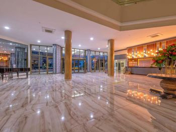 На ресепшене не говорят по русски, и английский плохо знают. Кровать для ребёнка не могли 2 дня принести в номер, пришлось ругаться, только тогда поняли. Не работает детская комната и закрытый бассейн, плохо работает лифт (прижимаете людей). Хаммам не нагревают каждый день.