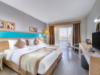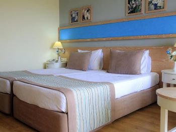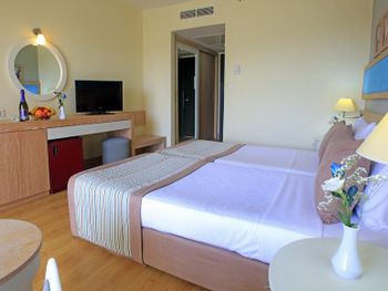1. Кондиционер работает очень слабо (я не очень люблю кондиционеры, но даже мне было жарко). 2. Ванна старая, узкая (гораздо удобнее было бы оборудовать ванную комнату современной душевой кабиной). 3. Если отель заполнен, то мест в основном ресторане не хватает, спускались вниз по лестнице к столикам у бассейна; на пляже не хватало шезлонгов и нас размещали на пляже соседнего отеля.