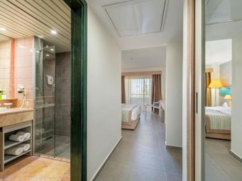 Самый большой минус, который очень подпортил отдых, - это ужасная шумоизоляция, ее просто нет, и не важно, куда выходят окна. Наши смотрели на соседний отель и музыка до 11 гремела так, будто на максимуме работает в комнате телевизор. Ребёнок, который привык засыпать в 9.30, мучался до 11, и мы с ним. Как справедливо писали другие, кондиционер в лобби с работой не справлялся, да и в столовой, прохладно было только в номере. Несколько раз не хватало столов за ужином, приходилось ждать, 3 дня подряд не хватало полотенец, давали маленькие и просили прийти через час. Пару раз не хватило лежаков. Не было утюга, который бы могли принести в номер! Гладить можно было только у них, то есть сервис обязательно платный, альтернативы нет. 3 платья и блузка обошлись в 18 евро.