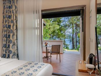 Просторные номера в бунгало, большие террасы с прекрасным видом, есть смежные номера для большой семьи или компании друзей. Большая тенистая территория, длинный променад вдоль моря, очень зелено.