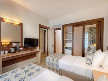 Все друг у друга на голове ! Уборки в номере у нас не было три дня ! На третий день мы уже просто обратились с просьбой убрать номер . Убрали только в пять вечера .Мы были всего три дня , для нас это не критично , но это все таки пять звёзд . Еда в ресторане не вкусная , только овощи спасают дело . Горячее готовить не умеют , шеф повару двойка . Фрукты только на корм скоту .Турецкие сладости на троечку , остальные сладости даже не вызывают желания попробовать. В начале ужина толпы народа и очереди. В целом это отель для непритязательных пакетных туристов . Территории практически нет . Сервиса тоже .