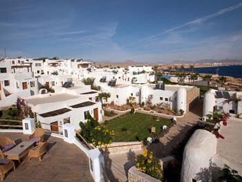 Главное достоинство этого отеля - риф и территория. Отель расположен на мысу, риф с двух сторон, с одной - с красивым уходом в глубину. Территория довольно большая, ухоженная, со скамеечками и барами. Отель архитектурно выстроен как старый арабский город, забавно. Обслуживание на хорошем уровне (для египта), если его стимулировать чаевыми. Концепция олл-инклюзив включает местный алкоголь (бесплатно). Посетите ресторан а-ля карт - это бесплатно, по предварительной записи - хорошая кухня с местным колоритом.