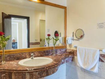 Мы остались отелем очень довольны. Наш номер был улучшенной категории, располагался рядом с бассейном и главным рестораном. Номер просторный, большой приятной неожиданностью была отдельная полноценная кровать для ребёнка 8 лет. Ванная комната большая, с водой проблем не было.