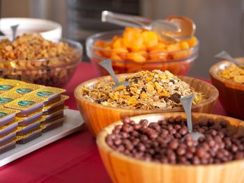 Номенклатура блюд - никакая. В лучшем случае из горячего будет омлет. Все остальное - или салат из макарон с майонезом или оливки , но 5 видов. Наслаждайтесь!