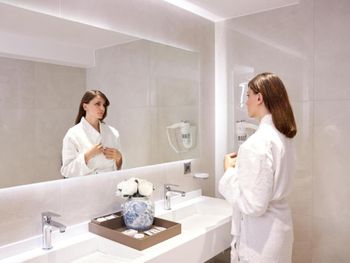 Отель хороший, но на 4 звезды не тянет. В номере есть тапочки, чайник, стаканы- бумажные, очень неудобно с них пить, хотелось бы, чтобы были стеклянные кружки или стаканы, халатов нет, что несвойственно для 4* отеля. Тапочки в последние дни уже не меняли((( Очень сильно используют очиститель воздуха в фойе отеля и в номере, что очень плохо для аллергиков и астматиков, прям до тошноты. Администраторы отеля надоедают турами по городу и на фабрики по изготовлению шуб и курток(((