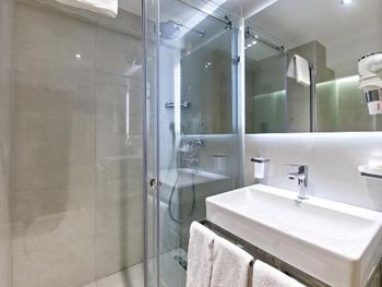 Номер стандартный ,но тесный, узкий коридор, нет места расположить чемоданы. Ванная комната очень узкая , крупному человеку не развернуться.Окна номера выходили на вход в отель - ночью шумно.