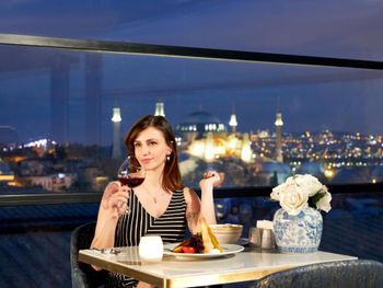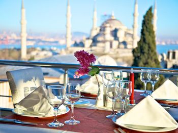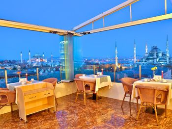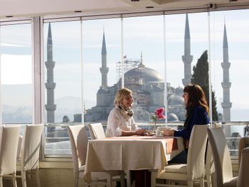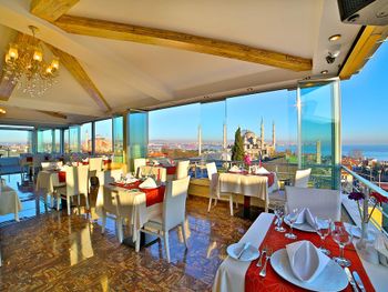 Расположение для пеших прогулок прекрасное. Вид на террасе на голубую мечеть, Босфор, город. Это прекрасно, что утром, что вечером. Особенно вечером, когда включена подсветка исторических достопримечательностей. Ресторан уютный, кухня вкусная. Хамам прекрасно расслабил после длинной прогулки.