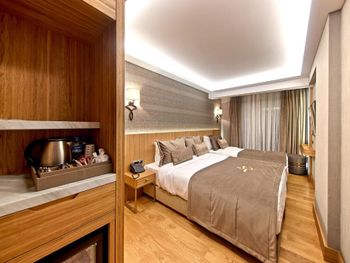 Номер стандартный ,но тесный, узкий коридор, нет места расположить чемоданы. Ванная комната очень узкая , крупному человеку не развернуться.Окна номера выходили на вход в отель - ночью шумно. Завтраки отвратильные,всего наставлено много,но колбаса была с душком,и все какое-то обветренное.Сьедобная была каша овсянка.Кофе в кофемашине кислый,чай и тот не вкусный,что не характерно для Стамбула. Такси заранее на определенное время не бронируют на ресепшен.В итоге заказали ,ждали 20 минут в фойе на ресершен. Рядом стройка дома или отеля и в итоге сели в такси и в этом переулке где вход в отель навстречу друг другу набилось машин ,что еще 15 минут такси не могло отьехать , в итоге чуть не опоздали в Аэропорт.