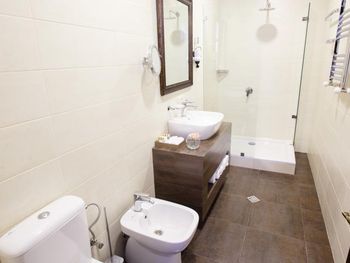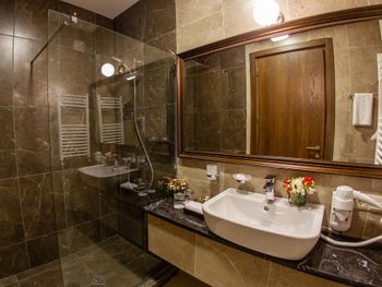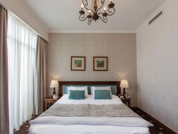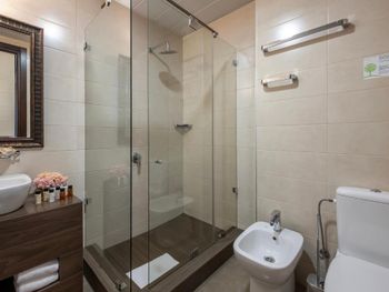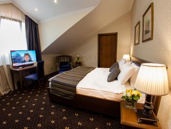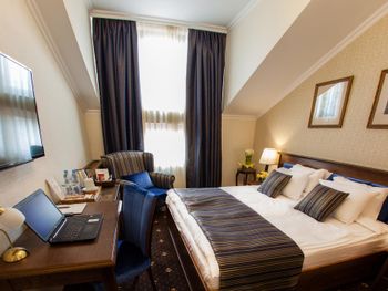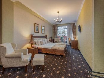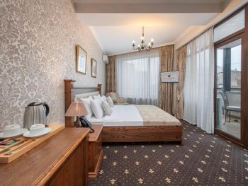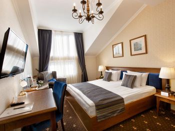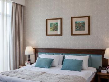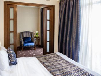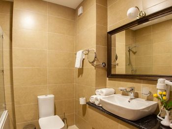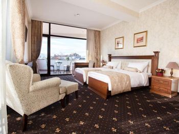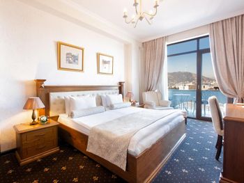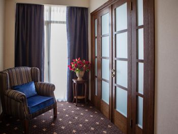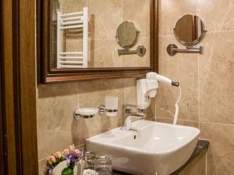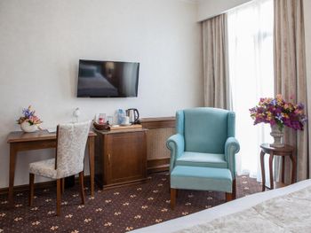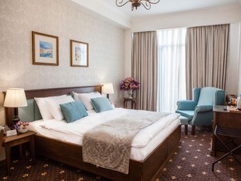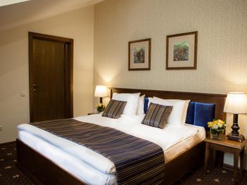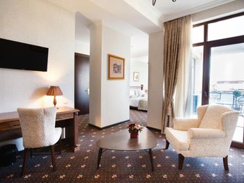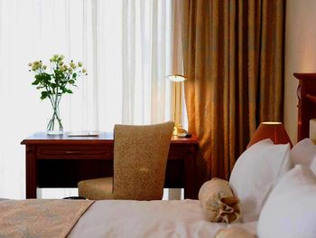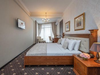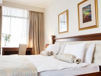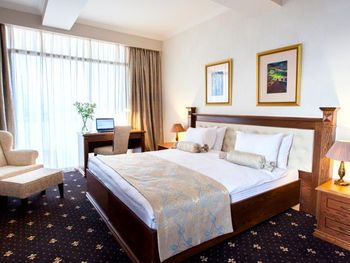 Каждый номер элегантно и изысканно оформлен. В распоряжении гостей кондиционер, телевизор с плоским экраном, сейф и мини-бар. В полулюксах также обустроен гостиный уголок с диваном. Собственная ванная комната укомплектована бесплатными туалетно-косметическими принадлежностями, тапочками, халатами и феном.