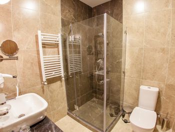 Душ в номере не имел лейки. Только маленький верхний душ, что совершенно не удобно, если не собираешься мочить голову. При этом, в нем невозможно было отрегулировать температуру.