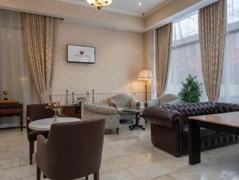 Недалеко от центра, интерьер в староанглийском стиле. В лоби баре на первом этаже вкусно готовят.