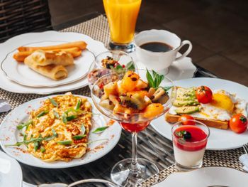 Отличные завтраки на любой вкус- каши, вкусная выпечка, много фруктов и овощей, омлеты, яйца, много сортов сыра, бекон, ветчина, сосиски, домашний творог со сметанкой, соки, несколько сортов чая, кофе. Все, чтобы утро было прекрасным..