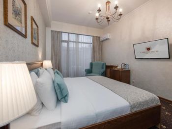 Я ожидала двухкомнатного номера, но номер был не плох. Отдыхали с ребенком, по нашему желанию варили супчик куриный, когда ребенок приболел, однако, в меню рум сервиса он стоит 6,5 лари, а при заказе супа, чая и меда, заплатили 31 лари...не вникали, так как не до этого было (ребенок заболел)...Мне все понравилось, особенно терраса, очень уютно и красивый вид! Слышимость между номерами ужасная. Уборка в неудобное время, коло 16-17 часов...когда все люди отдыхают! Однако, расположение на 4-. Таксисты практически не знают как добраться до адреса (но, видимо, дело не в расположении отеля, они вообще не знают город). Одно радует, рядом шикарный ресторан В тени Метехи, что делает отель ооооочень привлекательным))) А так все было нормально. СПА дорого (очень), даже массаж классический не стала делать, так как это не приемлемая цена в 50 долларов для Тбилиси. Бассейн и сауна на 5!!! Персонал приветливый!!!