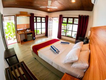Дорога от аэропорта. Трансфер два раза в сутки, т.е. приходится его ждать после рейса. И мы плыли на лодке три часа. Это просто жесть. Запасайтесь таблетками от укачивания и пакетиками "на всякий случай". Но это, конечно, от отеля не зависит. Также берите с собой наличные, чтобы заплатить за отель. При оплате картой берут комиссию 3,5%. Нас об этом не предупредили, к сожалению. И не стоит надеяться, что на острове в магазинах Вы что-то докупите на месте. Там ничего нет. Все, что нужно - берите с собой. И самый большой минус для меня - неустойчивый wi-fi. Для того, чтобы работать или позвонить по wa - каждый раз приходилось идти на ресепшн. Но это вряд ли проблема для основной части людей в отпуске )))
