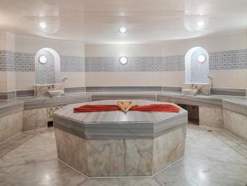 Море - его нет (понтон короткий и гости вынуждены плавать в воде уровня чуть выше груди, при этом дно - илистое). При огромном количестве бассейнов - подогревался всего один, из-за чего был довольно переполнен. Не слишком зелёная территория, не хватает деревьев. Некоторые виды еды вызвали вопросы - варенье было странного привкуса, мёд - как будто расплавленный сахар, такая же ненатуральная, а от того и не вкусна пахлава. В целом, неплохо бы поработать над логистикой раздачи в ресторанах, так как при большом количестве точек питания - всё равно возникают очереди и пустые контейнеры. В номерах нет нормальной звукоизоляции. Создаётся впечатление, что основной упор отель делает на бесплатный/безлимитный алкоголь. Территория огромная, но для нас это был минус, так как тратишь много времени для хождения вдоль чужих номеров, чтобы, например, дойти к теннисному корту или на пляж. Не в укор отелю, посетители вели себя довольно похабно, в том числе по отношению к персоналу.