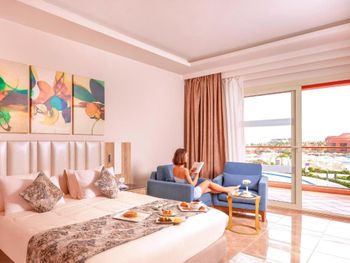 Это отличный семейный отель. С момента заезда и до момента выезда всё было просто супер замечательно. Чувствовалась забота от персонала во всем. Все возникающие вопросы были решены сразу. Хусейн на стойке администрации всегда был на связи и всегда интересовался как у нашей семьи дела. Все было замечательно. Мы проживали в двух номерах Deluxe с выходом к бассейну , до центрального бассейна 50 метров . Питание в отеле отличное , каждый находил свое блюдо , сезонные фрукты: бананы , финики , хурма, яблоки, грейпфруты и тд вкуснейшие. Отдельное спасибо за чистоту , персонал везде и всюду без остановку терли мыли и убирали. Чувство чистоты во всем . Рестораны Аля карт тоже были замечательные , посетили азиатский и европейский . Аквапарк радовал не только детей , но и родителей , отличные горки разной высоты. Отличным помощником стал лифт для поднятия на верхнюю платформу с кругами и лодками для спуска , у меня 3 детей и приходилось кататься без остановки 😃, лифт помог не стереть ноги об лестницу. На территории есть серф бассейн, работает два раза в день , это отличный аттракцион для детей и взрослых. Отличный пляж с хорошим заходом в воду . Есть пирс для выхода подальше . На пляже работает школа серфинга и др морских приключений. Дайвинг центр, сотрудник Зизу хорошо разговаривает на русском. В целом отличный отель, отдыхали в октябре , погода была волшебная , отель волшебный . Нам все очень понравилось . Вся моя большая семья , а это трое детей 6,10,16 лет , вернется в этот отель в следующем сезоне. Спасибо за чудесный отдых. И еще отличительная особенность : отель очень зеленый для Египта, огромное количество садовников создают волшебные композиции - это очень красиво.